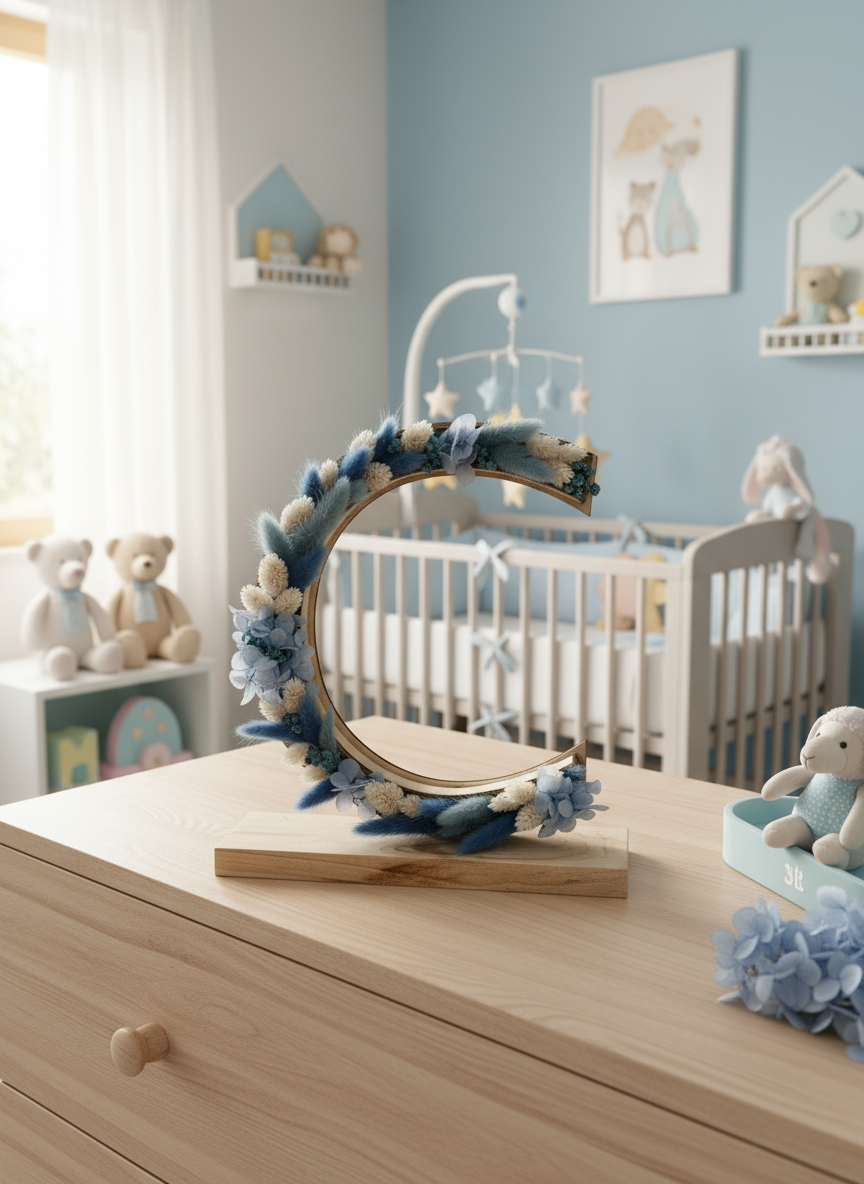 ✅ Diseño floral artesanal ✅ Colores naturales: azul, amarillo y verde ✅ Base de madera clara ✅ Ideal para decoración o regalo personalizado