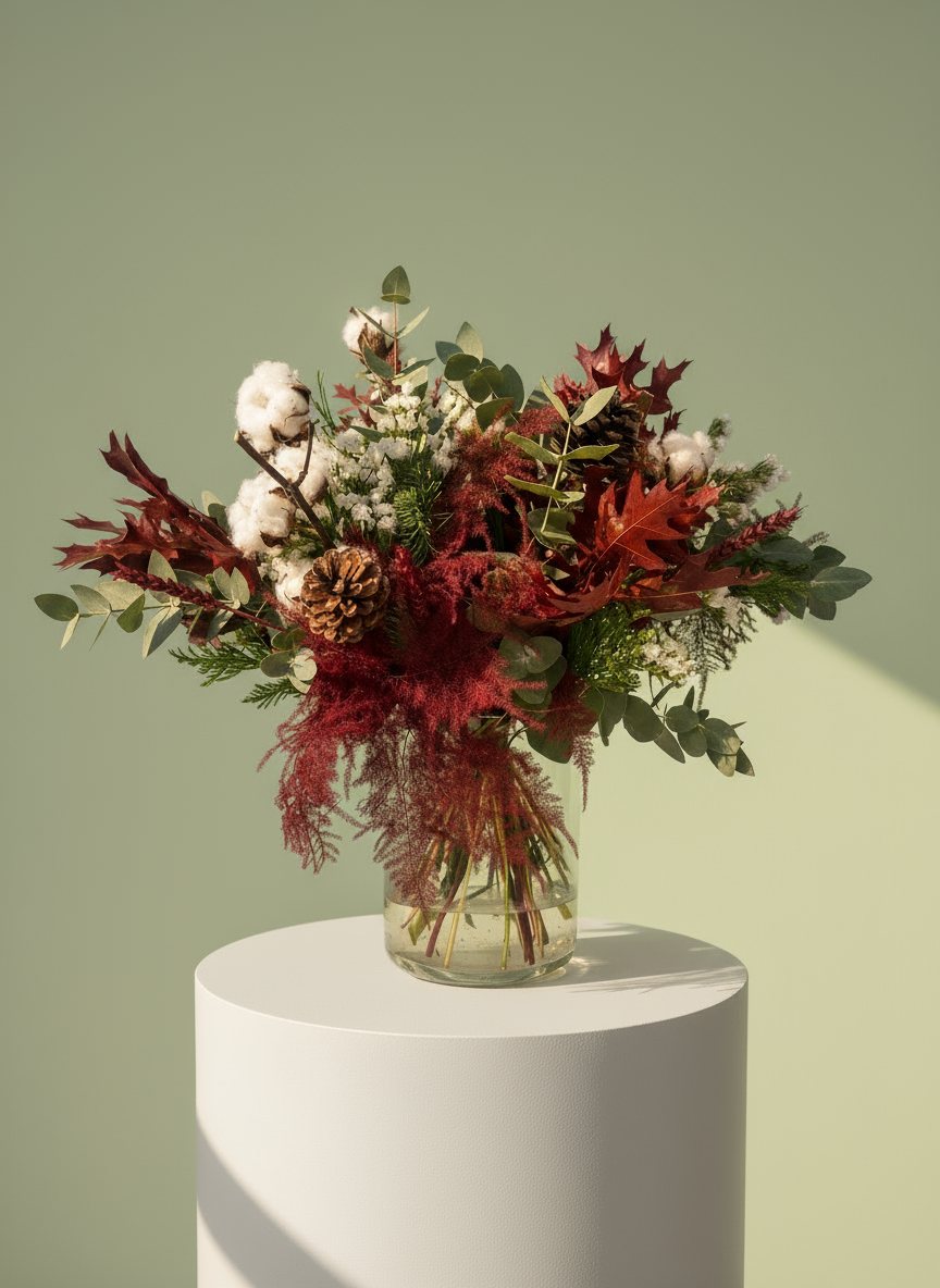 “Winter Love” es ese ramo que transforma tu casa en un refugio cálido en pleno invierno. Sus tonos naturales, su textura y su estilo artesanal llenan el ambiente de armonía, elegancia y esa sensación tan bonita de hogar cuidado. Perfecto para acompañar cenas, velas y tardes tranquilas donde la Navidad se siente de verdad. Una pieza que no solo decora, sino que envuelve todo con su encanto invernal.